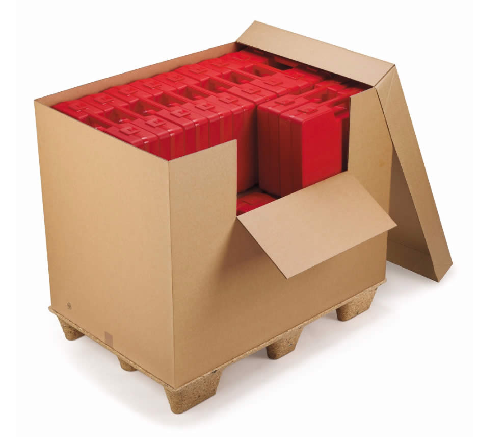 Contenedores de cartón para exportación, plegables y apilables, aseguran el transporte de sus artículos al tiempo que optimizan los costes logísticos.